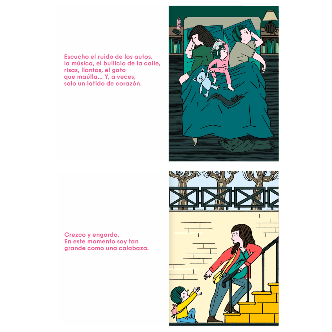 Descubrimiento y crecimiento: a través de las páginas, los lectores acompañan al bebé en su viaje de descubrimiento, experimentando su crecimiento y desarrollo en el útero.