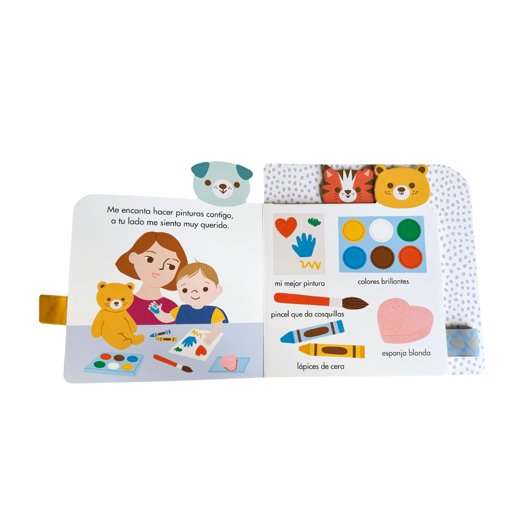 ¡Vamos a jugar! Este libro reúne los juegos que los más pequeños disfrutan día con día, como: jugar con juguetes, pasear al aire libre o hacer manualidades. Y al estar diseñado para las primeras etapas de aprendizaje, cuenta con ilustraciones coloridas y bien definidas como apoyo visual. El texto tiene una cierta musicalidad que anima a los niños a comenzar a hablar. Cada página está adornada con tiernas pestañas y cintas de tela de diferentes texturas que atraerán a los bebés a explorar e interactuar con el libro.