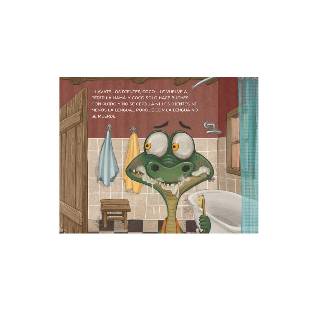 Coco no quiere lavarse los dientes; tiene muchos y se cansa, se aburre. Y dice que la crema dental “le pica”. ¡Pero se pasa todo el día comiendo bombones de pescado! La mamá lo reta y él… no hace caso.
