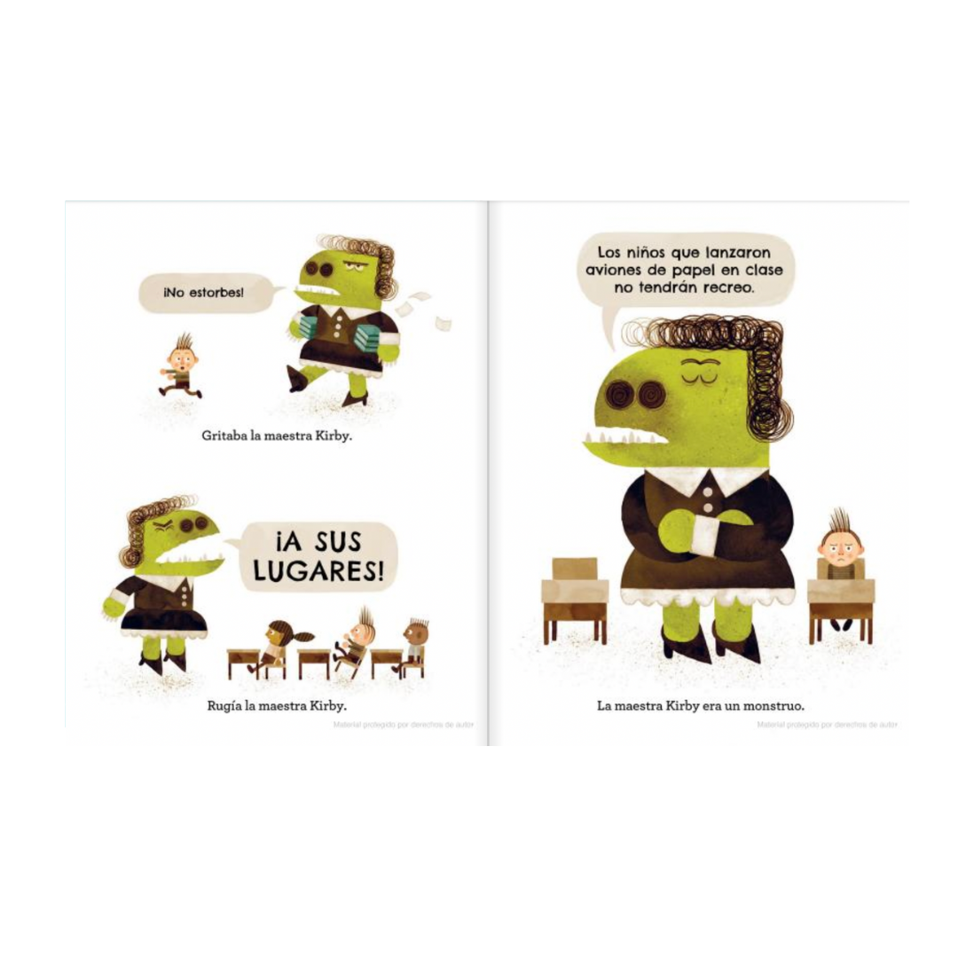 Las clases han comenzado y Roberto tiene un gran problema: su maestra, la profesora Kirby, es un monstruo real, con la piel verde y dientes puntiagudos, que ruge y deja sin recreo a los alumnos. Sin embargo, un sábado por la mañana, Bobby se encuentra con su maestra en el parque. Al principio quiere escapar de ella. Sin embargo, mientras ambos conversan, descubre que hay aspectos de la profesora que no imaginaba. De manera sorprendente, los dientes puntiagudos de la señorita Kirby desaparecen y su piel verdosa adquiere un tono más humano. Estos cambios persisten cuando Roberto regresa a la escuela el lunes... al menos la mayor parte del tiempo.