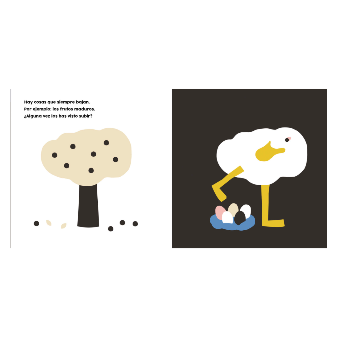 Hay cosas que siempre bajan; otras, en cambio, siempre suben. Y también hay cosas que a veces suben y otras bajan. A veces puedes prever el porqué, otras, no. ¿Cuál es la relación entre las acciones de subir y bajar? ¿Se puede dar una sin la otra? Dando respuesta a estas preguntas con imágenes delicadamente metafóricas, la autora explora el principio de la dualidad. Un libro de descubrimiento, para grandes y pequeños, un libro para sorprenderse a partir de sencillos hechos cotidianos sobre los que no solemos pararnos a pensar.