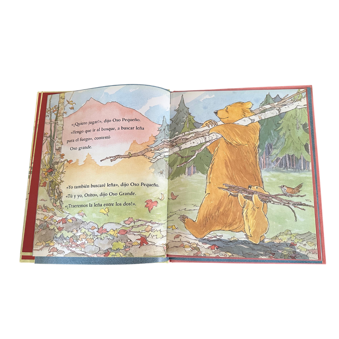 Oso Pequeño sale a explorar el bosque, ensaya los primeros pasos de su autonomía, se enfrenta a la oscuridad de la noche y al miedo… Pero Oso Grande está siempre a su lado para protegerlo, ayudarlo y darle seguridad. «Ternura» es la palabra que define a esta colección de cuatro cuentos sobre las aventuras de cada día, las rutinas, los descubrimientos, las emociones que acompañan el crecimiento de Oso Pequeño. Siempre acompañado por el cariñoso y comprensivo Oso Grande.