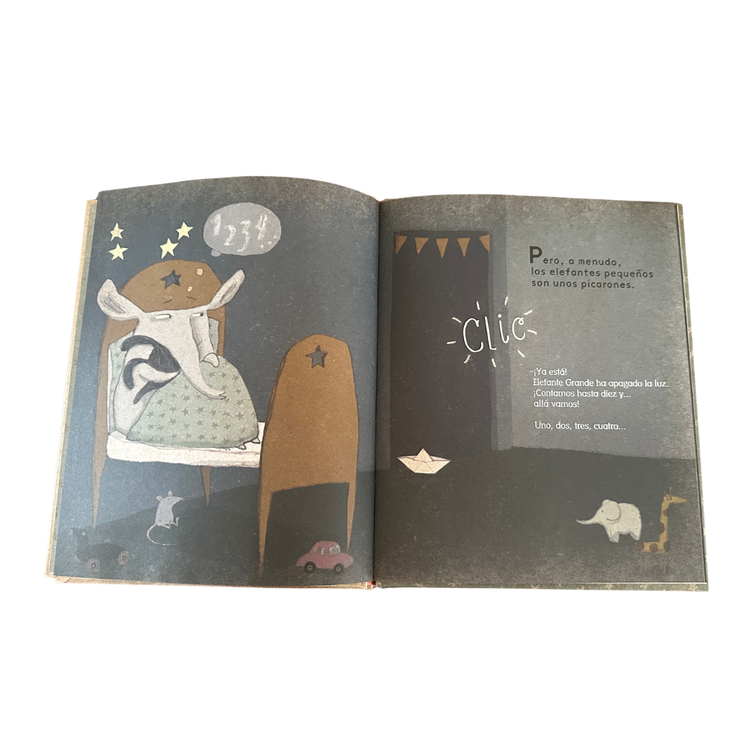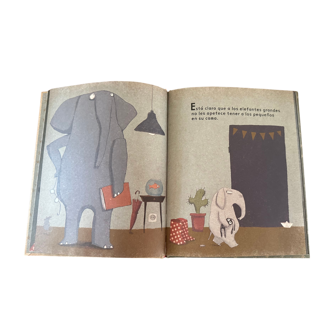 Al pequeño elefante se le ha metido una idea en la cabeza: quiere dormir en la cama de Elefante Grande. Y aunque Elefante Grande le ha dicho que no, él no parará hasta conseguirlo. El pequeño elefante pone en marcha un plan: espera a que Elefante Grande se duerma y, de puntillas, se mete en su cama. Pero Elefante Grande ronca, es pesado y ocupa todo el espacio. El elefantito no pega ojo en toda la noche y vuelve a su cuarto…, ¡cuando ya amanece y Elefante Grande viene a despertarlo! A todos los niños pequeños les gusta ir a la cama de sus padres. La oscuridad, la noche, la soledad… Todo esto les produce angustia. En cambio, estar acurrucados junto a sus padres les reconforta y consuela. Pero, aunque excepcionalmente los padres les dejen colarse bajo la manta, lo aconsejable es que cada uno duerma en su propia cama. Kris di Giacomo, ilustrador de «La vocecita» y «La tarta de hadas», se luce nuevamente junto a Coralie Saudo («Mi papá» y «Mi papá en el zoo»). En esta ocasión ambos ofrecen a los padres un buen recurso para la hora de dormir. Los padres accederán a la recurrente demanda infantil, pero solo por un rato; para compartir este divertido libro, reírse con las ilustraciones y disfrutar con una historia redonda, compuesta por frases breves y chispeantes. Los niños se convencerán de que dormir todos juntos no es tan buena idea. El mejor plan será esperar en su camita y preparar la sonrisa para recibir a los padres que vendrán a darles los buenos días.
