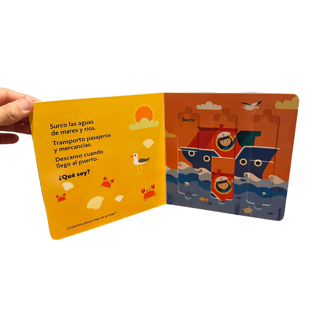 Un libro puzzle para los más pequeños con acertijos sencillos y un juego de observación. ¡Conoce el mundo de los vehículos!